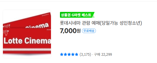 예매권만 잘 구매해도 영화 값이 절반 수준으로 내려갑니다. 할인할 때를 노려보세요.